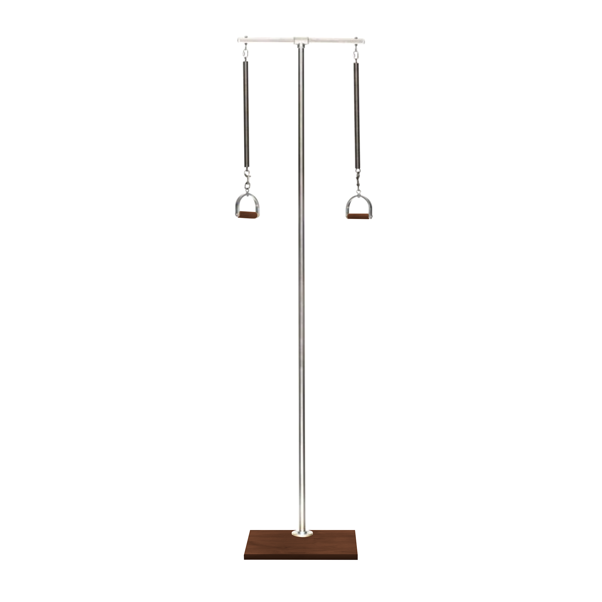 The Legacy Pilates Ped-o-Pull consists of a T-shaped rod at the top connected to a tall metal pole, which is mounted in a square wooden base. Springs are fixed to the horizontal part and the vertical portion represents the spine, which is aligned with the pole. Exercises on the Ped-o-Pull also promote shoulder stability and balance.